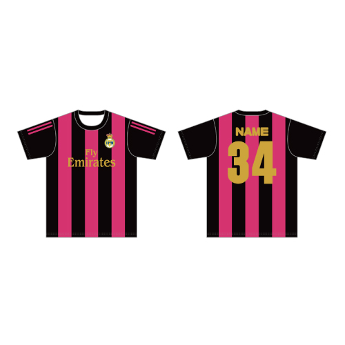 オリジナルサッカーユニフォーム(ピンク*ブラックストライプ)